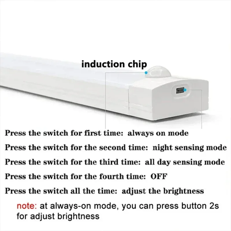 3. There are two forms of constant light and induction. Press the switch once to be constant light, the second time it is induction, press the switch again to turn off